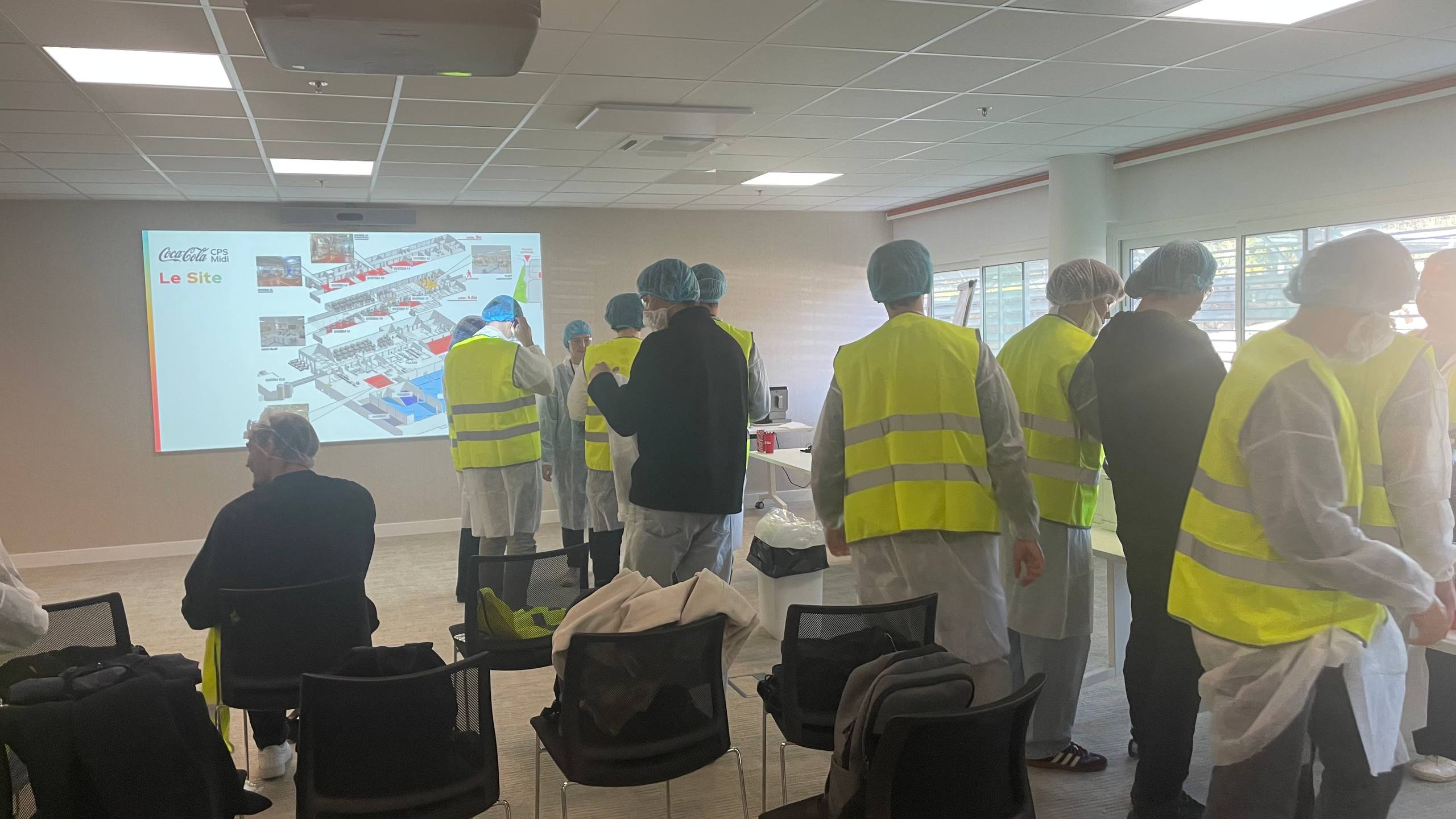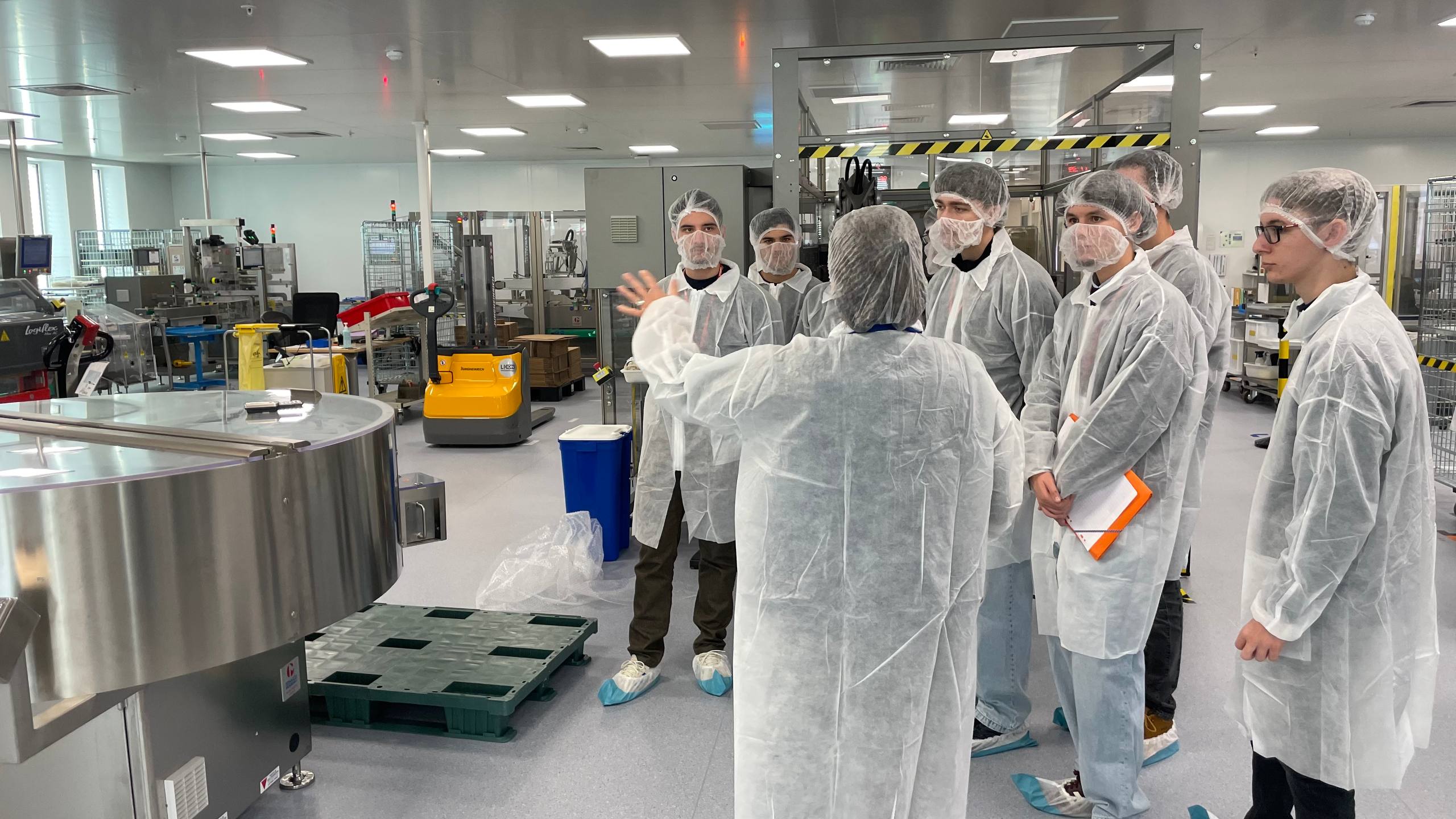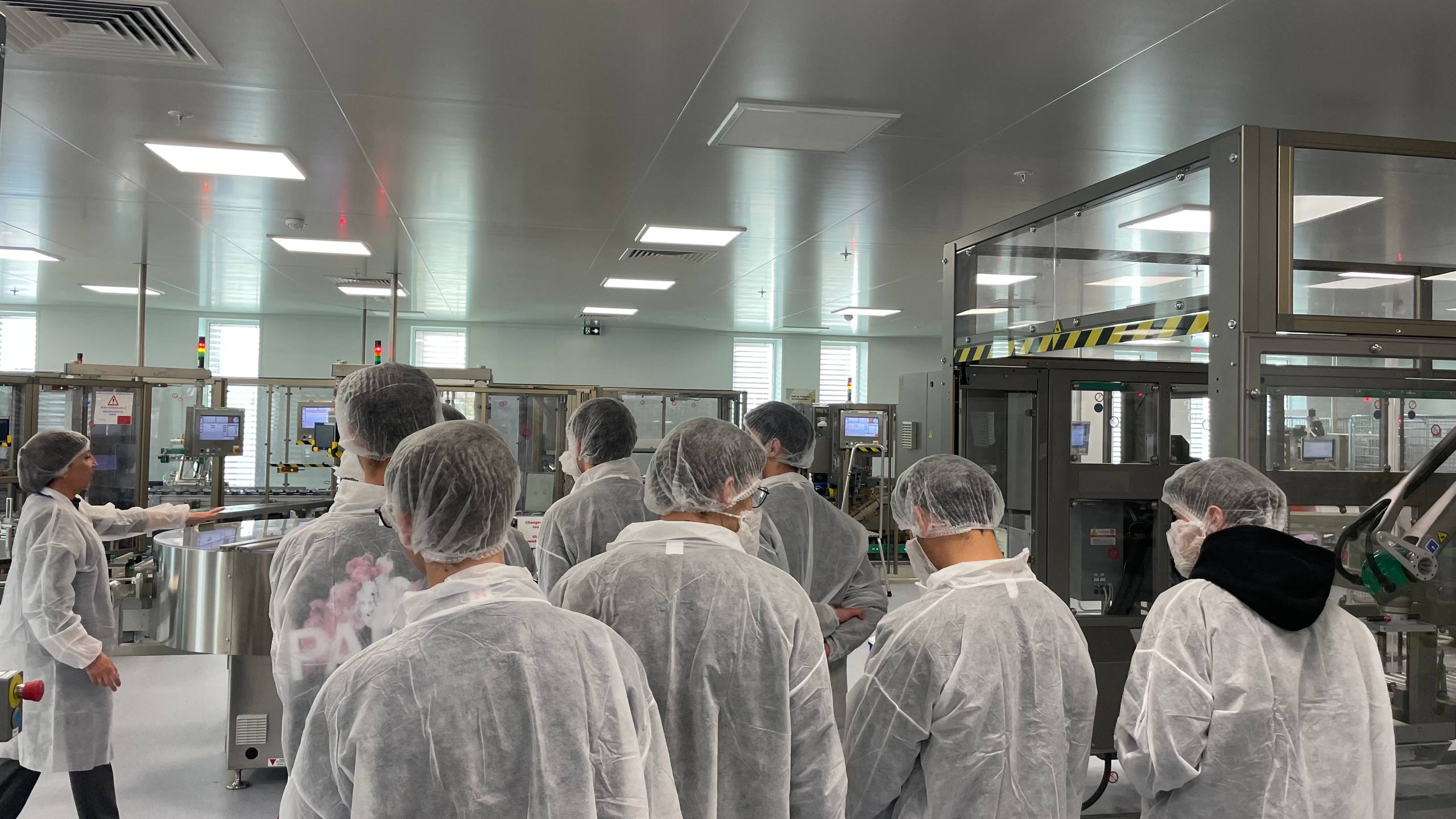 Équipés des protections réglementaires, les étudiants ont ensuite découvert les ateliers de production d’IPSEN, observant notamment les contraintes liées à l’hygiène et à la traçabilité dans l’industrie pharmaceutique. L’après-midi, ils ont poursuivi la visite sur le site Coca-Cola, où ils ont pu explorer les installations et découvrir les exigences spécifiques d’un site de production agroalimentaire.